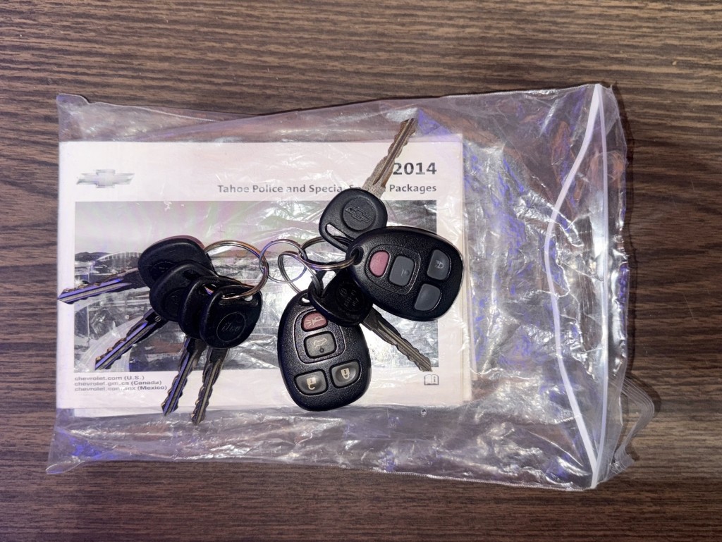 Very clean Police Tahoe with a fleet maintained history. Black on black, center console, cruise control. Spare keys and key fobs. 8660 idle hours.